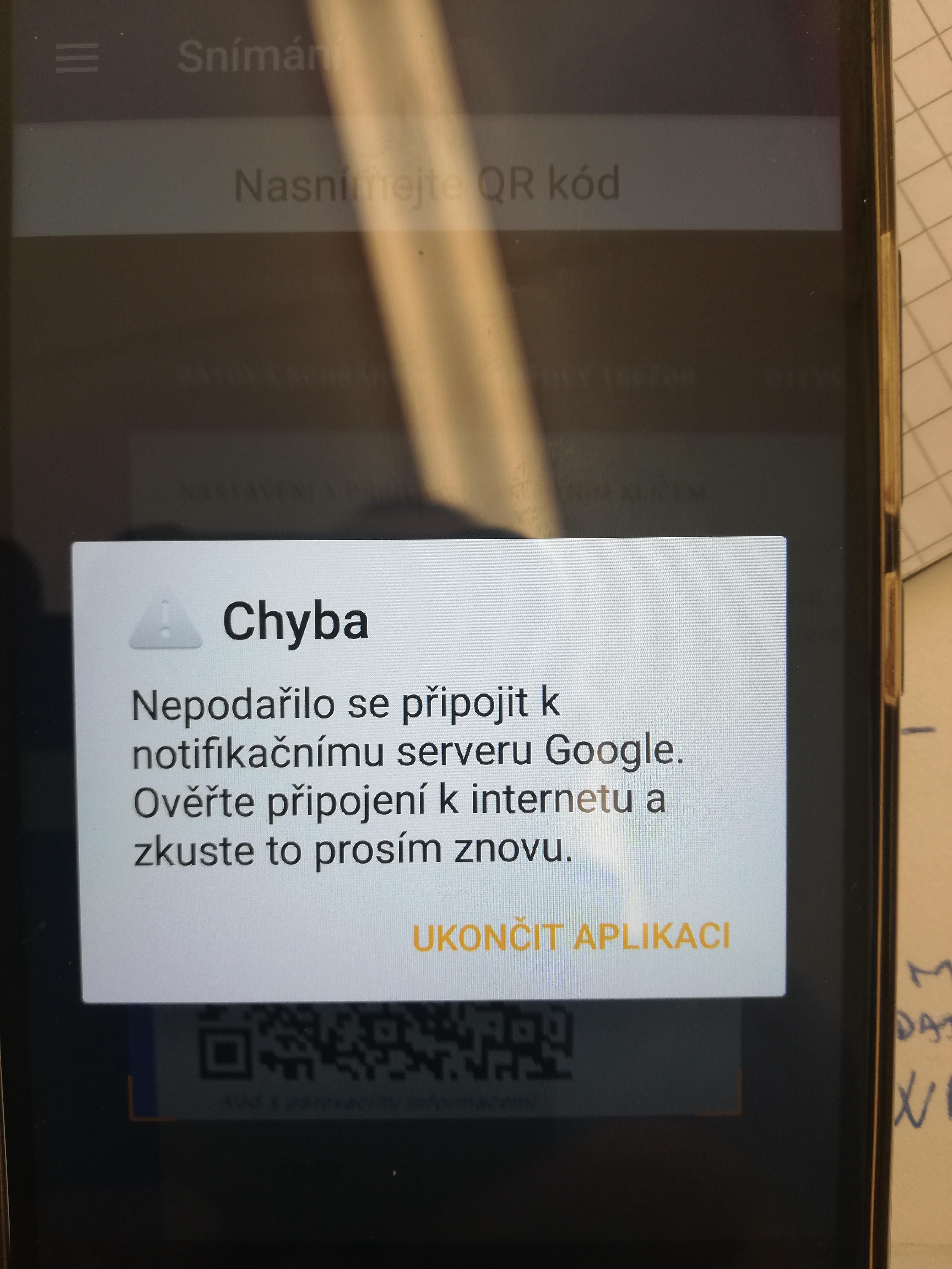 Ta druhá hláška říká, že je problém s připojením k internetu a nedaří se načíst push notifikace,co víc tam chcete dopsat? Nebo je to hlášeno i při funkčním internetu? Pak to prosím popište tak, abychom to mohli identifikovat, tedy ID schránky, ID uživatele a ID mobilního klíče a co nejpřesnější datum výskytu. Ale pak se jedná o provozní problém, který by měl jít nejprve na CallCentrum České pošty, které, pokud si nebude vědět rady, jej předá dál.