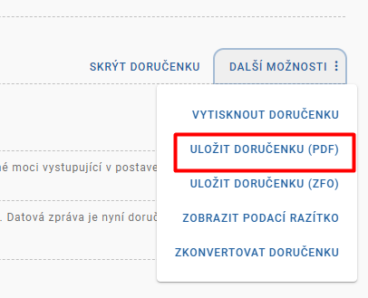 už nějakou dobu je v aplikaci DS možnost stáhnout doručenku ve formáte PDF.